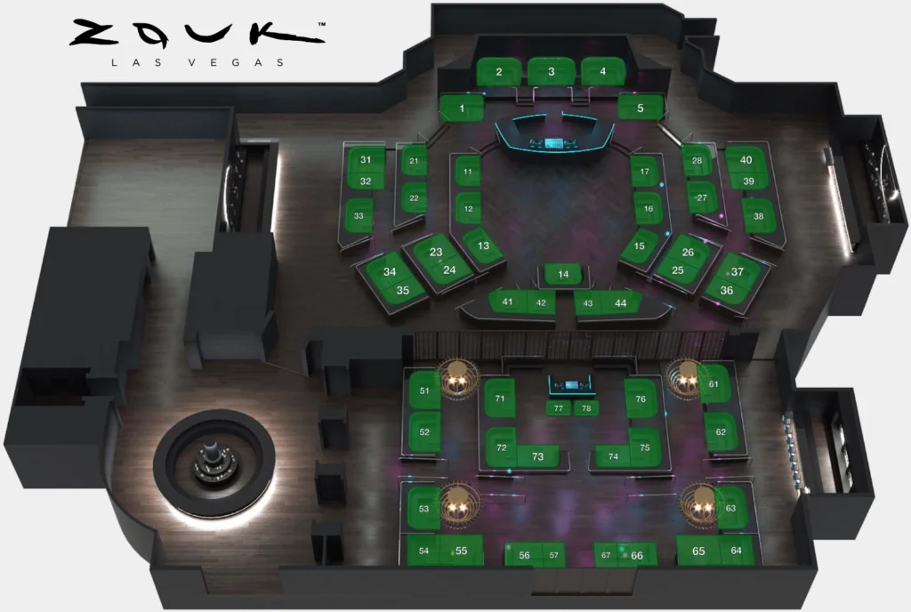 Ahora es mucho más fácil reservar una mesa en Zouk. Verás todos los costos por adelantado, incluyendo impuestos y propinas, así que no habrá sorpresas. Después de reservar, tu mesa estará lista. Cuando llegues, simplemente ve al área de servicio de mesas que está a la izquierda del club para registrarte. Esta área es solo para personas que han reservado el servicio de botellas.